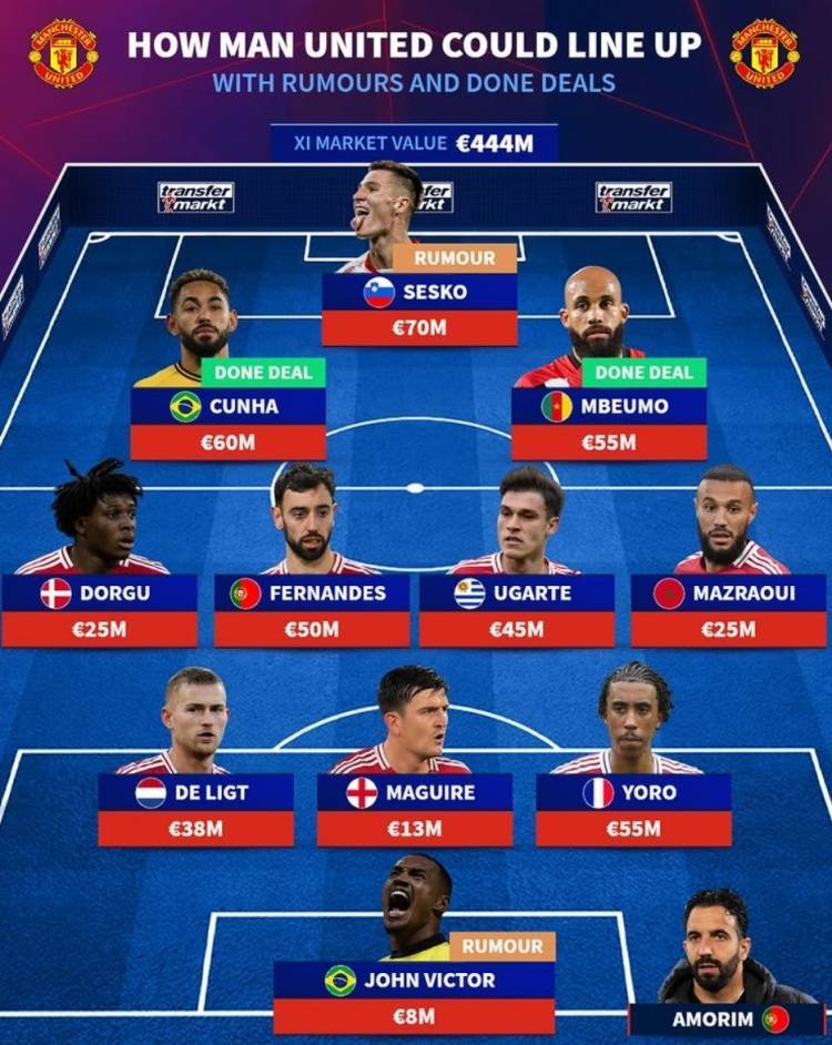 德转预测曼联新赛季主力阵:总身价4.44亿欧元